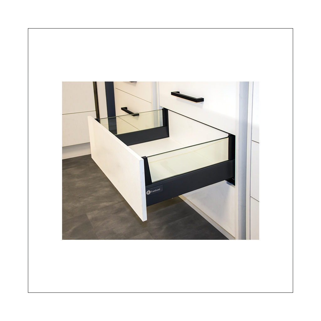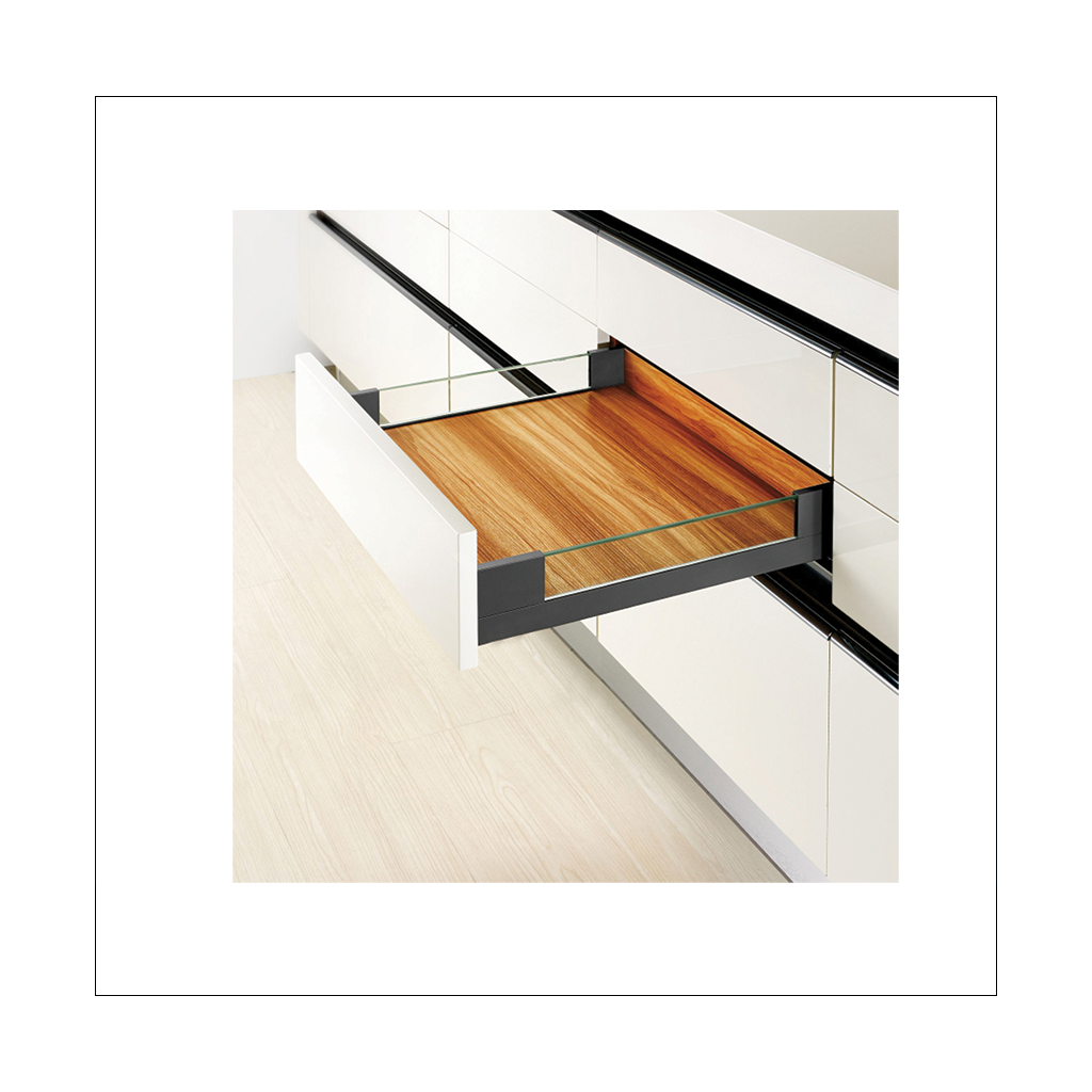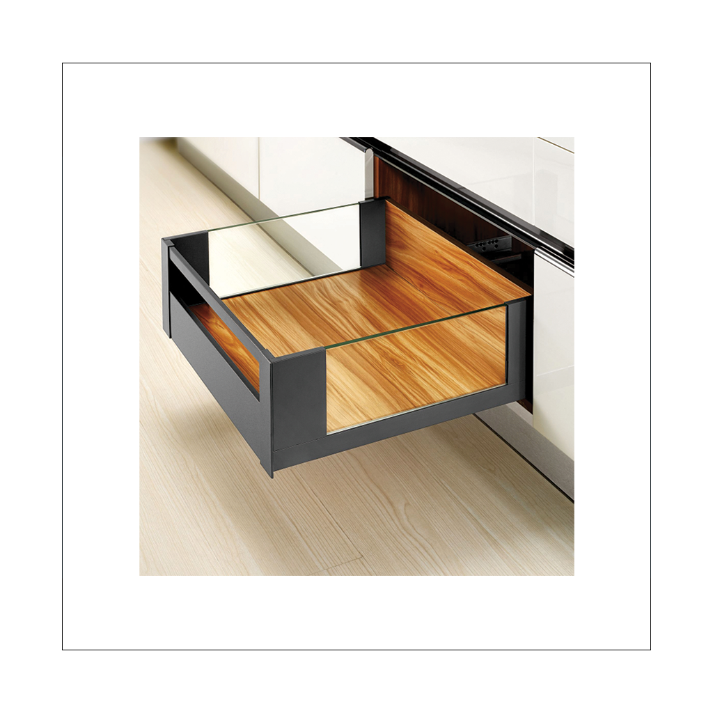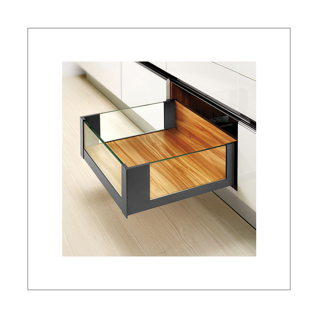 B014- ریل بدنه دار دبل باکس بلند با دیزاین ساید شیشه عمق 45